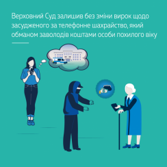 Верховний Суд залишив без зміни вирок щодо засудженого за телефонне шахрайство, який обманом заволодів коштами особи похилого віку