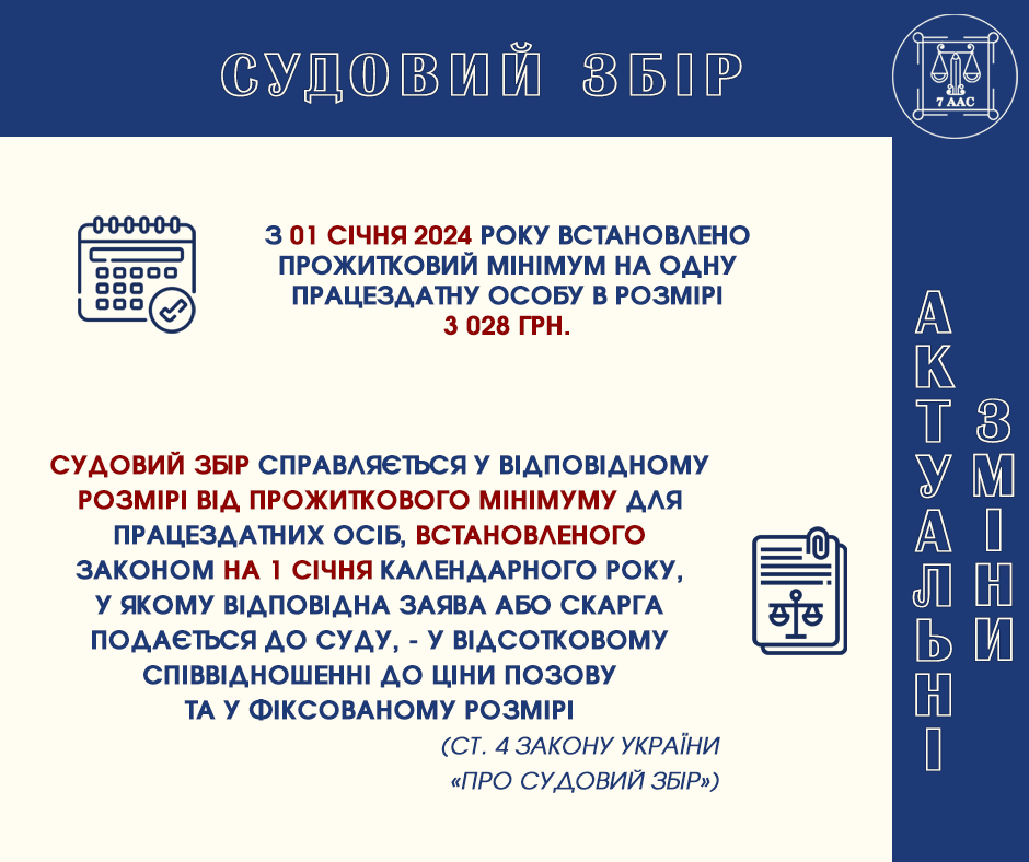 7ААС опублікував інфографіку щодо актуальних ставок судового збору у 2024 році