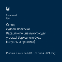Пропонуємо до уваги черговий щомісячний огляд актуальної судової практики Касаційного цивільного суду у складі Верховного Суду за лютий 2024 року – https://supreme.court.gov.ua/userfiles/media/new_folder_for_uploads/supreme/ogliady/Oglyad_KCS_02_2024.pdf