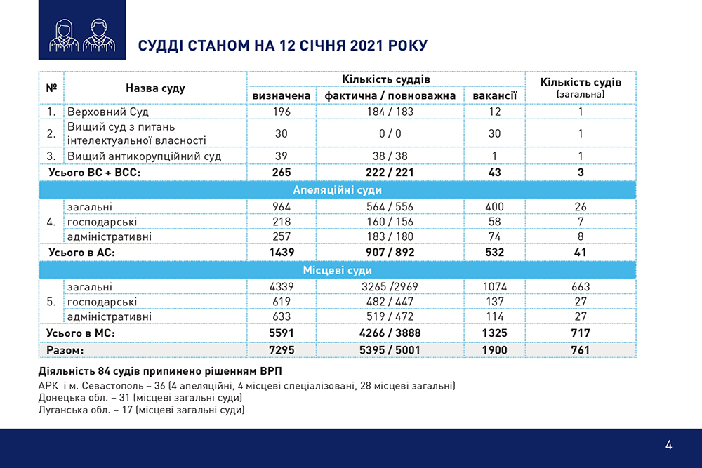 Динаміка кадрового забезпечення суддів 2015-2021