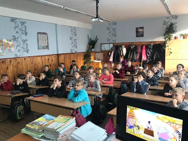 Майже 120 учнів четвертих класів переглянути мультфільм «Слон проти Жирафи», у якому відбувається спір між  Слоном і Жирафою, який вирішує суддя Черепаха. Учні спробували чесно та справедливо розсудити спір, а також поділилися думками, що вони знають про суд, хто такий суддя, чи вважають себе справедливими, які причини виникнення суперечок та шляхи їх розв’язання.