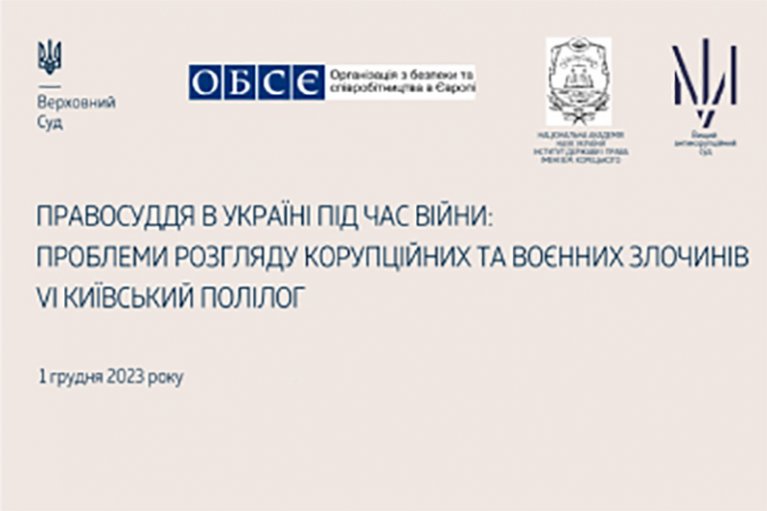 1 грудня 2023 року у Верховному Суді відбудеться VІ Київський полілог «Правосуддя в Україні під час війни: проблеми розгляду корупційних та воєнних злочинів».